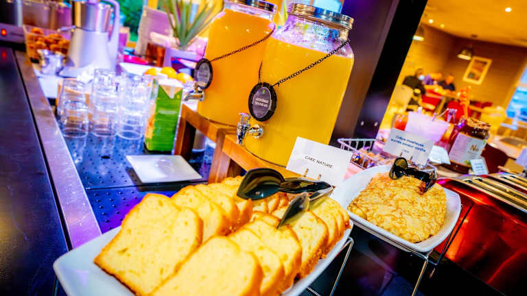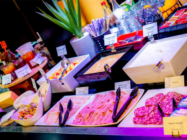 Das Hotel verfügt über ein Restaurant, das traditionelle französische Küche zum Mittag- und Abendessen serviert. Jeden Morgen wird ein reichhaltiges Frühstücksbuffet angeboten.