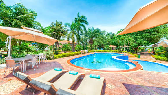 Das Hotel Campestre La Potra ist die perfekte Unterkunft für Ihren Aufenthalt in Villavicencio. Hier können Sie die großzügigen Außenbereiche mit 2 Pools genießen und gleichzeitig die Nähe zur Apiay Air Base und zur Stadt Villavicencio nutzen. Das Hotel bietet kostenfreies WLAN in den öffentlichen Bereichen sowie kostenlose Parkplätze. Die Zimmer sind komfortabel und klimatisiert, mit Fliesenböden und einfachem, aber gemütlichem Interieur. Sie verfügen über Sat-TV und eine Minibar, einige Zimmer bieten sogar einen Blick auf den See. Beginnen Sie Ihren Tag mit einem leckeren Frühstücksbuffet und genießen Sie regionale und internationale Gerichte im Hotelrestaurant, das den ganzen Tag geöffnet ist.