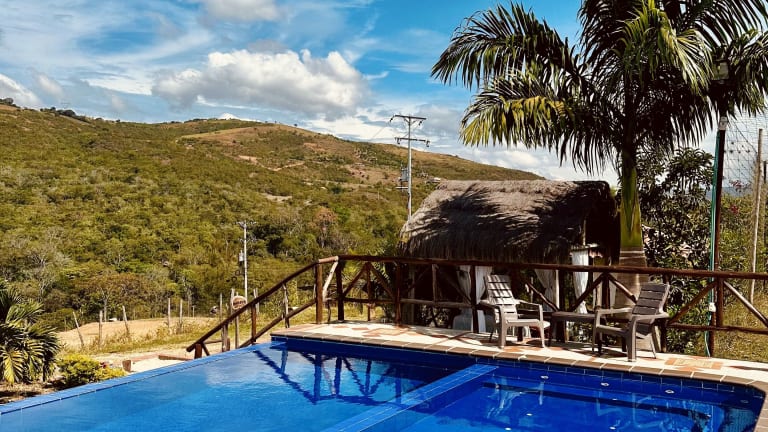 Das Hotel Campestre Palmas del Zamorano in San Gil ist die ideale Unterkunft für einen erholsamen und abwechslungsreichen Aufenthalt. Mit einem Außenpool, kostenfreien Privatparkplätzen und einem schönen Garten bietet das Hotel alles, was Sie für einen angenehmen Aufenthalt benötigen. Das freundliche Personal, das Restaurant und der Zimmerservice sorgen dafür, dass es Ihnen an nichts fehlt. Die Zimmer sind komfortabel eingerichtet und bieten teilweise einen herrlichen Blick auf die Berge. Genießen Sie ein leckeres kontinentales oder amerikanisches Frühstück, bevor Sie die Umgebung erkunden. Im Hotel können Sie sich im Innenpool entspannen und Tischtennis spielen. Die Umgebung eignet sich perfekt zum Wandern und der Nationalpark Chicamocha ist nur 35 km entfernt. Verpassen Sie nicht den Wasserpark Chicamocha, der ebenfalls in der Nähe liegt.