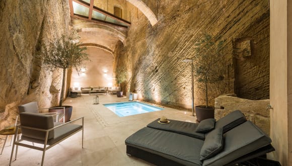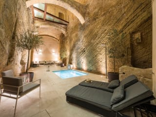 Hotel Can Mostatxins ist ein exklusives Hotel mit einem Spa-Pool und 19 einzigartigen Zimmern. Das Hotel liegt im Zentrum der historischen Altstadt Alcudias. Den Namen erhielt das Gebäude nach seinem ehemaligen Besitzer, einem Metzger namens Raphael Aguilo Valls, der im Jahre 1898 geboren wurde. Wievielen Mallorquinern, wurde ihm der Spitzname "mostatxins" gegeben. Das ist eine Verkleinerungsform des mallorquinischen Wortes "mostatxo", das Schnurrbart bedeutet. Er trug einen sehr dünnen Schnurrbart mit zusammengerollten Rändern. Die Umgestaltung des Hotels von einer Ruine zu einem Boutique Hotel hat mehr als 4 Jahre gedauert. Unzählige Handwerker und Restauratoren wurden eingesetzt, unter der Aufsicht von einem Archäologen, um das Hotel zu modernisieren. Die alte architektonische Struktur wurde so komplett wieder hergestellt : vielleicht war die größte Entdeckung die alte Weinpresse, die man heutzutage im Untergeschoss des Hotels finden kann. Der Turm, wahrscheinlich der älteste in Alcudia, wurde ebenfalls komplett restauriert. So ist es nun möglich, eine Mischung von moderner und mittelalterlicher Geschichte zu erleben. Die Zimmer: Alle Zimmer im Hotel Can Mostatxins sind einzigartig und wurden sorgfältig renoviert, um eine Fusion zwischen ihrem ursprünglich gotischem Stil und ihrer modernen Ausstattung zu erreichen. Alles, was man von einem modernen First-Class-Hotel erwarten kann, ist vorhanden und geprägt von mallorquinischer Geschichte und Tradition. Alle neunzehn Schlafzimmer sind vollklimatisiert. Im Hauptgebäude, welches den Namen Quinze trägt, sind zwei der Schlafzimmer über einen eigenen privaten Steg aus Glas zu erreichen, was nicht nur einen dramatischen Zugang zum Turm des Hotels aus dem 15. Jahrhundert ermöglicht, sondern auch einen atemberaubenden Blick auf den Pool- und Wellnessbereich bietet. Das Tower Executive-Zimmer und die Turm-Suite verfügen auch über eine eigene Terrasse, während im angrenzenden Gebäude, Frare genannt, das Junior Executive und das Executive-Zimmer mit einer Terrasse und Blick auf den Innenhof mit Whirlpool ausgestattet sind. Das Executive-Zimmer besitzt einen Balkon und das Junior Executive-Zimmer verfügt über zwei Juliet Balkone, die eine ruhige und malerische Straße überschauen. Alle unsere Betten sind auf maximalen Komfort ausgelegt. Die Wände der Schlafzimmer in Quinze bestehen aus original hellem Sandstein, der zum Teil freigelegt ist und die Fußböden aus heller, lackierter Eiche. Die Holzbalken wurden mit Kalkfarbe behandelt und die alten Fenster wunderschön restauriert. In Frare bieten die Schlafzimmer Höhe und viel Platz in Anlehnung an das spanische Design der Moderne des ursprünglichen Hauses. Schöne Dielen aus weicher Eiche bestimmen das Design und harmonieren mit modernen Farbschemata, originellen Kunstwerken, Massivholzmöbeln, verschiedener Beleuchtung, einem Schreibtisch mit zwei Stühlen sowie mehreren Aufbewahrungsmöglichkeiten.