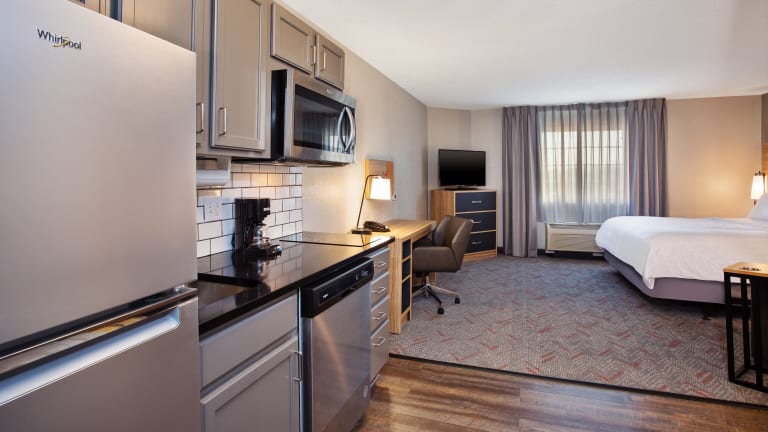 Die Zimmer im Candlewood Suites Kenosha sind modern und komfortabel eingerichtet. Jedes Zimmer verfügt über einen Flachbild-TV, eine voll ausgestattete Küche, eine Kaffeemaschine, einen Schreibtisch und ein Bügeleisen. Die Zimmer bieten den Gästen alles, was sie für einen angenehmen Aufenthalt benötigen.