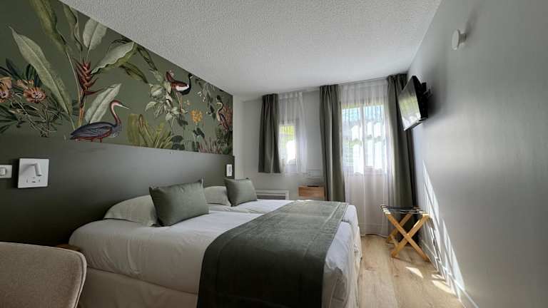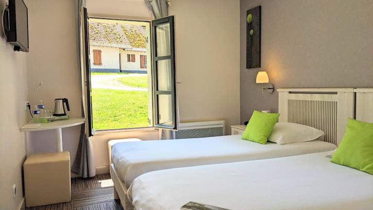 Die Zimmer im Hotel Le Cap Hornu sind modern und komfortabel eingerichtet und bieten einen herrlichen Blick auf den Garten. Jedes Zimmer verfügt über einen Flachbild-Sat-TV, kostenfreie Pflegeprodukte und einen Haartrockner. Zusätzliche Annehmlichkeiten wie WLAN und kostenfreie Tageszeitungen sorgen für einen angenehmen Aufenthalt.