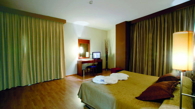 Das Hotel bietet 93 Zimmer, darunter 2 Junior-Suiten, 5 Einzelzimmer und 86 Doppelzimmer, die sich auf 2 Etagen verteilen und bequem über einen Aufzug erreichbar sind. Die Zimmer sind mit Klimaanlage, individuell steuerbarer Heizung, einem Doppelbett oder Kingsize-Bett, einer Terrasse (in den meisten Zimmern) sowie einem Safe und einem Schreibtisch ausgestattet. Zur weiteren Ausstattung gehören ein Telefon mit Direktwahl, ein TV-Gerät mit Satelliten-/Kabelempfang und kostenpflichtiges WLAN. Die Badezimmer verfügen über eine Dusche, eine Badewanne und einen Haartrockner. Einige Zimmer sind rollstuhlgerecht und verfügen über barrierefreie Badezimmer.