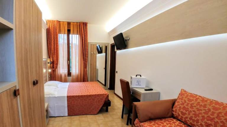 Die Zimmer im Hotel Carancini sind einfach eingerichtet und bieten kostenfreies WLAN sowie einen LCD-Sat-TV. Jedes Zimmer verfügt über eine Minibar und auf Anfrage können Sie Bademäntel erhalten. Einige Zimmer bieten zudem einen Balkon mit Blick auf den Park Mazzini.