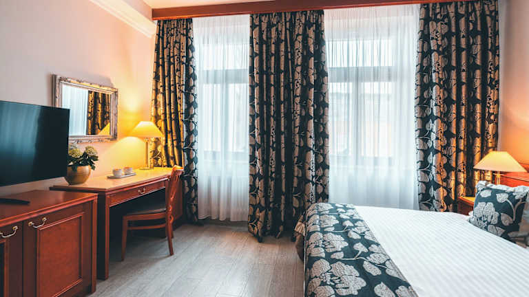 Das Hotel Carlton in Prag bietet seinen Gästen eine ideale Lage nur wenige Minuten vom Stadtzentrum entfernt. Die renovierten Zimmer sind klimatisiert und verfügen über kostenfreies WLAN. Das Hotel bietet zudem einen einfachen Zugang zu öffentlichen Verkehrsmitteln und liegt in der Nähe von Sehenswürdigkeiten wie dem grünen Hügel Parukářka und typisch tschechischen Kneipen. Genießen Sie einen komfortablen Aufenthalt in diesem gut ausgestatteten Hotel.