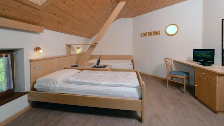 Die Zimmer im Hotel Casa Alpina - Alpin Haus sind im traditionellen Landhausstil eingerichtet und bieten eine gemütliche Atmosphäre. Holzmöbel und Lino Fußböden verleihen den Zimmern einen rustikalen Charme. Jedes Zimmer verfügt über einen Flachbild-TV und ein eigenes Bad. Die Zimmer befinden sich entweder im Hauptgebäude oder im Nebengebäude nebenan und bieten einen schönen Blick auf das Tal oder die Berge.