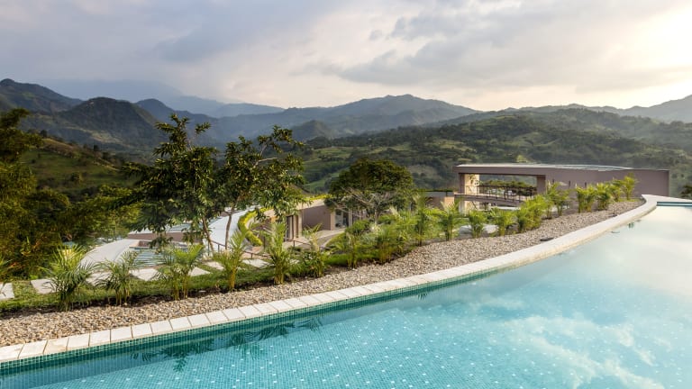 Zum Jubiläum mit meiner Liebsten verbrachte ich eine Nacht in diesem wunderbaren Hotel, das ca. 2 Stunden von Bogota entfernt ist. Es liegt auf einem Plateau in einer gebirgigen, sehr warmen Gegend. Wir hatten das größte Zimmer, die Suite gebucht. Dieses Zimmer ist das beste, was ich je in einem Hotel hatte! Ein riesiges Panoramafenster, eine frei stehende Badewanne, eine Doppeldusche mit Panoramafenster nach draußen, ein riesiges Bett, eine Couch, ein Balkon...Einfach traumhaft! Der Blick am morgen auf das grüne…