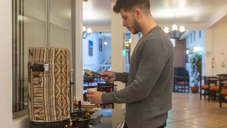 Das Hotel bietet ein Nichtraucherrestaurant, in dem Sie eine große Auswahl an Speisen genießen können. Beginnen Sie den Tag mit einem reichhaltigen Frühstücksbuffet und wählen Sie zwischen Halbpension und Vollpension für Ihre weiteren Mahlzeiten. Das Restaurant bietet auch spezielle Diätgerichte an. Für eine entspannte Tasse Kaffee oder einen Snack steht Ihnen das Café zur Verfügung.