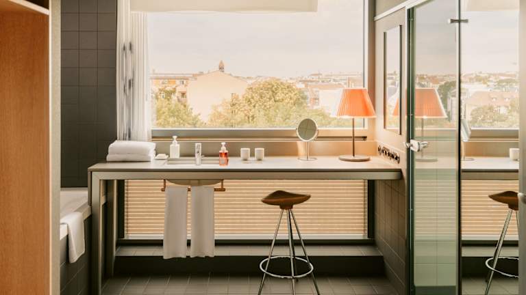 Die Zimmer im Casa Camper Berlin sind im modernen Designerstil gestaltet und bieten den Gästen eine komfortable und stilvolle Unterkunft. Jedes Zimmer verfügt über eine Klimaanlage, einen TV, einen geräumigen Sitzbereich und ein Badezimmer mit Tageslicht. Zur Ausstattung gehören auch Naturseifen, Pflegeprodukte und Hausschuhe, um den Komfort der Gäste zu gewährleisten.