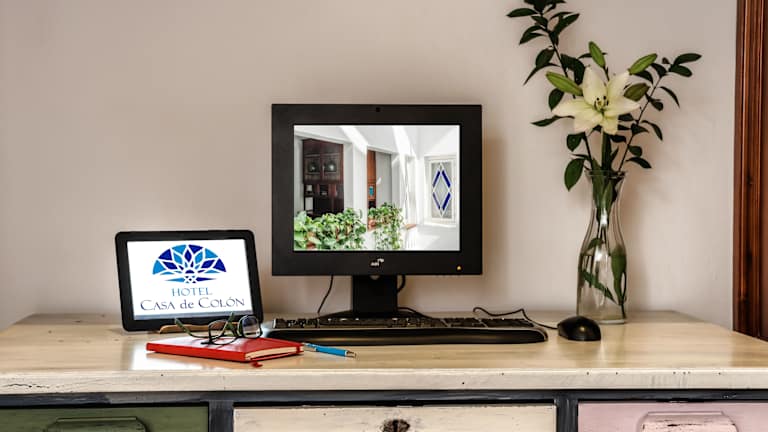 Die 17 Zimmer des Hotels Boutique Casa de Colón bieten ein individuelles Dekor und sind mit modernen Annehmlichkeiten ausgestattet. Die Zimmer sind klimatisiert und verfügen über ein eigenes Badezimmer mit kostenlosen Pflegeprodukten. Ein Flachbild-TV, ein Safe und ein Schreibtisch gehören ebenfalls zur Ausstattung. Die Zimmer sind um einen zentralen Innenhof mit Buntglasfenstern angeordnet, der dem Hotel eine besondere Atmosphäre verleiht.