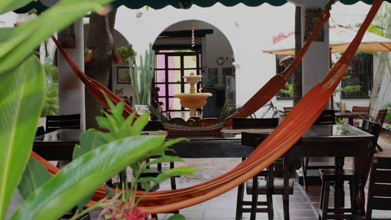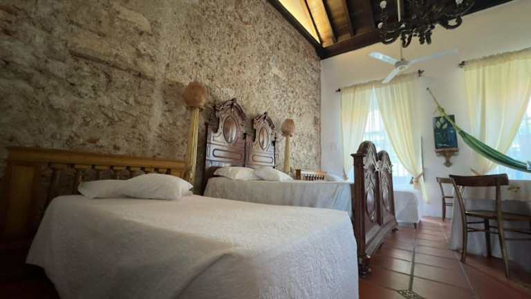 Die Zimmer im Hotel Casa de Las Palmas sind im Kolonialstil gestaltet und verfügen über klimatisierte Räume mit roten Fliesenböden, geschnitzten Holzmöbeln und verzierten Kronleuchtern. Zur Ausstattung gehören ein Flachbild-Kabel-TV und ein eigenes Badezimmer. Jedes Zimmer bietet einen gemütlichen und komfortablen Rückzugsort nach einem Tag voller Erkundungen.