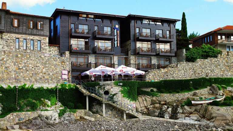 Entdecken Sie das Hotel Casa del Mare in Sozopol, das direkt am Strand neben den historischen Festungsmauern liegt. Genießen Sie den atemberaubenden Blick auf die Bucht von Sozopol von Ihrem Zimmer oder der Terrasse des Restaurants. Das Hotel bietet komfortable Zimmer mit Klimaanlage und kostenfreiem WLAN sowie eine 24-Stunden-Rezeption. Die Lage des Hotels ermöglicht es Ihnen, den Strand, die Altstadt und andere Sehenswürdigkeiten in der Umgebung bequem zu erreichen.