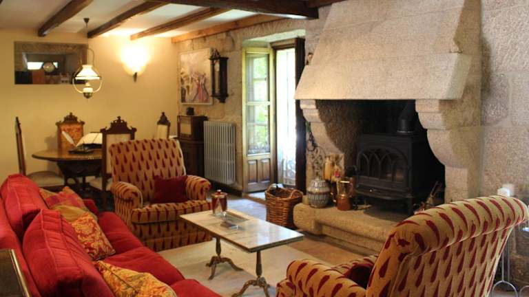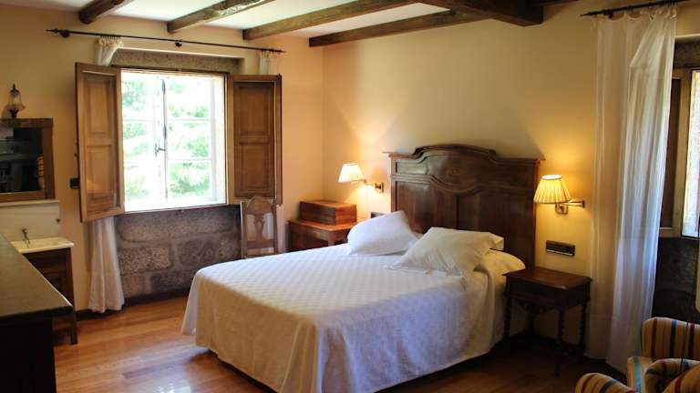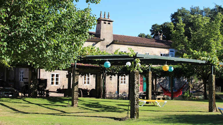 Das Hotel Casa Grande de Soutullo ist eine charmante Unterkunft auf einem großen Landgut in Galizien. Hier können Sie inmitten einer malerischen Umgebung im Landhausstil entspannen und die Schönheit der Region entdecken. Das Hotel bietet individuell eingerichtete Zimmer im ersten Stockwerk, die mit antiken Möbeln und Hartholzmöbeln ausgestattet sind. Einige Zimmer verfügen über eine Internetverbindung und andere über einen Fernseher. Jeden Morgen wird ein reichhaltiges Frühstücksbuffet mit lokalen Produkten im alten Stallzimmer serviert. In der näheren Umgebung finden Sie typische galizische Tavernen-Restaurants, in denen Sie lokale Spezialitäten genießen können. Das Hotel bietet auch ein geräumiges Wohnzimmer mit Kamin, in dem Sie sich entspannen können. Die Mitarbeiter stehen Ihnen gerne mit Informationen zu Aktivitäten im Freien sowie kulturellen und gastronomischen Routen zur Verfügung. Das Hotel liegt nur 10 Fahrminuten von Ourense entfernt und Santiago de Compostela erreichen Sie in 60 Autominuten.