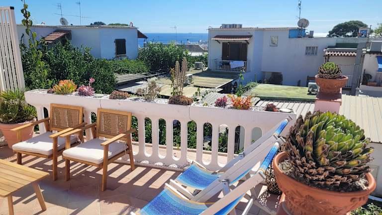 Eine lange Geschichte der Gastfreundschaft im Hotel Casa Nicola in Succhivo. Das Hotel ist vor mehr als fünfzig Jahren eröffnet und seitdem immer mit großer Hingabe und Kreativität von der Familie Iacono geleitet worden, Pioniere der Hotellerie in Succhivo. Tatsächlich war Casa Nicola das absolut erste Hotel in diesem zu Serrara Fontana gehörenden und immer sonnigen Ort. Casa Nicola ist ein alteingesessenes Haus mitten im Grünen und mit den lebendigen, natürlichen Farben der Insel Ischia, es ist ein Ort der Ruhe und des Wohlbefindens, aber es ist auch der Ausgangspunkt, um das schicke Leben der mondänen Insel Ischia zu erleben, denn es befindet sich nur 800 Meter entfernt vom exklusiven Ort Sant'Angelo. Das Hotel befindet sich auch in der Nähe eines der bekanntesten Strände der Insel Ischia: der Marontistrand mit seinen römischen Thermen und den Fumarolen im Sand. Das Hotel Der subtile Charme der alten ischitanischen Architektur Der ganze Charme der alten ischitanischen Architektur vereint im Hotel Casa Nicola. Das Hotel, bestehend aus einem zentralen Gebäude und aus einem anderen freistehenden Haus, ist umgeben von betäubenden Aromen der fruchtbaren Landschaft von Succhivo, wo sich die Weinberge abwechseln mit Orangen- und Zitronenhainen, die immer voller duftender Früchte sind. Casa Nicola ist in dem einfachen und gewöhnlichen Landhausstil der Insel Ischia, wo die Möbel wesentlich sind und die Farben die Tonalität der Natur rundherum widerspiegeln, wie das intensive rosa des Sonnenuntergangs, das hier jedesmal wieder in einer Darbietung seine Pracht zur Schau stellt.