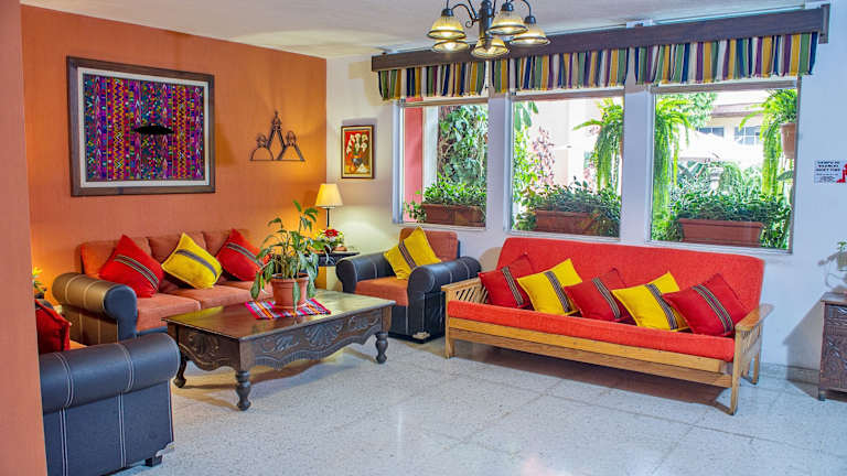 Das Hotel Casa Rustica by AHS ist die ideale Wahl für einen Aufenthalt in Antigua Guatemala. Mit seiner zentralen Lage, nur wenige Gehminuten vom Central Park und der Kirche La Merced entfernt, ist es der perfekte Ausgangspunkt, um die Stadt zu erkunden. Das Hotel bietet kostenfreies WLAN, eine Gemeinschaftsküche und bezaubernde Gärten mit einem herrlichen Blick auf den Vulkan. Die Zimmer sind gemütlich eingerichtet und bieten einen schönen Blick auf den Garten. Einige Zimmer verfügen über ein eigenes Bad, während andere Zugang zu einem Gemeinschaftsbad haben. Das Hotel bietet auch Sitzmöglichkeiten im Freien und eine 24-Stunden-Rezeption mit einem Reiseservice. Parkplätze stehen gegen Aufpreis zur Verfügung. In der Umgebung gibt es eine große Auswahl an Bars, Restaurants und Museen. Der Vulkan Agua und Guatemala-Stadt sind ebenfalls leicht zu erreichen.