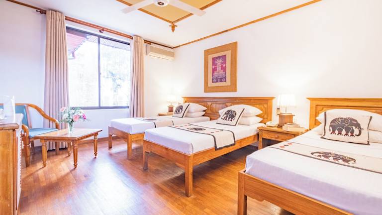 Das Hotel bietet 35 Zimmer auf 6 Etagen, die über einen Aufzug erreichbar sind. Die klimatisierten Zimmer sind mit einer Minibar, einem Ventilator und Sat-TV ausgestattet. Das Badezimmer verfügt über Pflegeprodukte und eine Warm-/Kaltwasserdusche. Ein Wäsche- und Bügelservice steht Ihnen zur Verfügung und an der 24-Stunden-Rezeption können Sie Ihr Gepäck aufbewahren lassen.