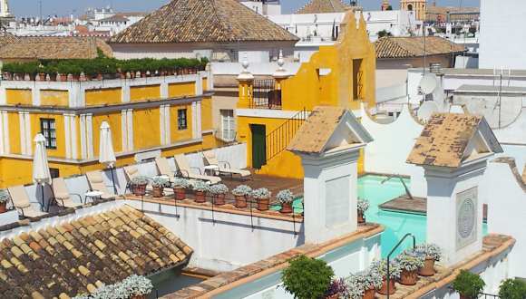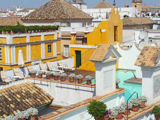 Das Hotel Las Casas de la Judería in Sevilla bietet seinen Gästen ein einzigartiges Erlebnis inmitten von traditionellen sevillanischen Häusern. Mit einem Pool auf dem Dach, einem Spa und klassisch gestalteten Innenhöfen bietet das Hotel eine entspannte Atmosphäre und die perfekte Mischung aus Komfort und Authentizität. Die Lage im historischen Viertel Santa Cruz ermöglicht es den Gästen, Sevillas charmante Altstadt und die berühmte Kathedrale in nur wenigen Gehminuten zu erreichen. Die Zimmer sind traditionell gestaltet und verfügen über original erhaltene Elemente sowie antike Möbel. Der Pool auf dem Dach bietet einen atemberaubenden Panoramablick auf die Stadt.