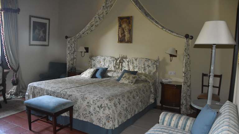 Das Hospedium Hotel Caserío de Lobones verfügt über komfortable Zimmer, die im authentischen spanischen Stil eingerichtet sind. Das Gebäude stammt aus dem 17. Jahrhundert und wurde sorgfältig restauriert, um viele der charmanten Originalmerkmale zu bewahren. Jedes Zimmer ist mit eleganten Vorhängen, antiken Möbeln und religiösen Gemälden ausgestattet, die eine gemütliche und traditionelle Atmosphäre schaffen. Das Hotel bietet auch eine Kapelle aus dem 19. Jahrhundert, die einen besonderen Charme verleiht.