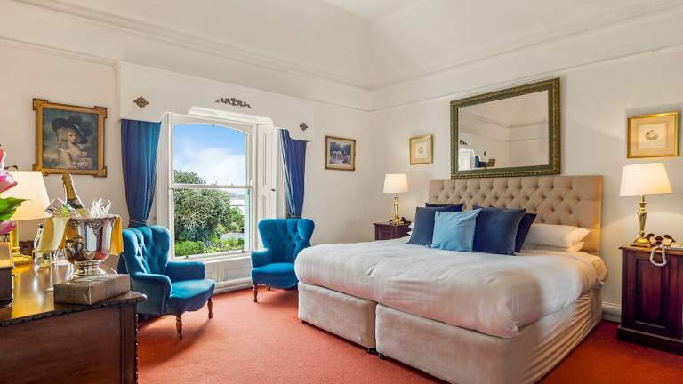 Die Zimmer im Cashel House Hotel sind geräumig und bieten einen Blick auf die Landschaft. Sie sind im Landhausstil des 19. Jahrhunderts gestaltet und mit antiken Möbeln ausgestattet, die dem Raum eine charmante Atmosphäre verleihen.