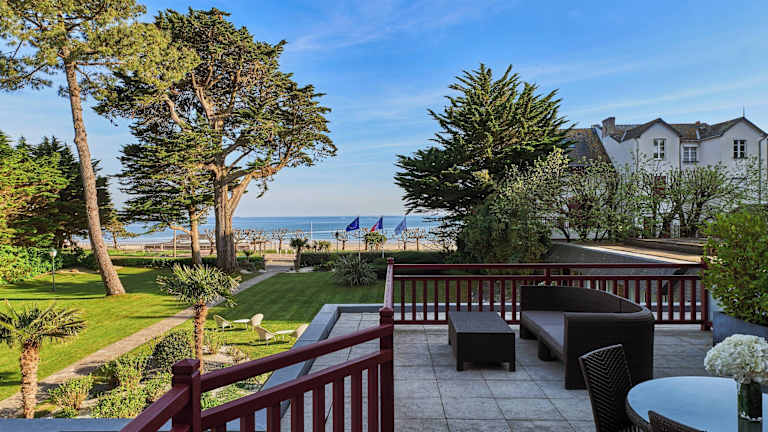 Das Hotel Le Castel Marie Louise in La Baule ist ein charmantes Landhaus in idealer Lage am Meer. Mit seinen malerischen Gärten, geräumigen Zimmern und kostenfreien Fahrrädern bietet es eine entspannte Atmosphäre für einen erholsamen Aufenthalt. Genießen Sie ein kontinentales Frühstück und köstliche Gerichte im eleganten Restaurant oder entspannen Sie in der Hotelbar. Das Hotel bietet auch kostenfreie Aktivitäten wie Golf, Tennis, Wassergymnastik, Katamaranfahren und Kajakfahren.