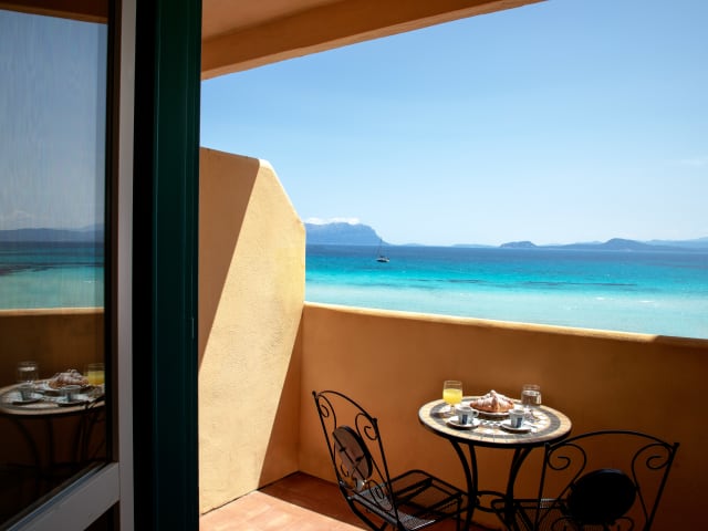 Die "Deluxe Sea View Rooms" mit Meerblick haben einen unbezahlbaren, atemberaubenden Blick auf die ruhige, transparente Bucht und auf das wilde Inselchen Figarolo und die majestätische Insel Tavolara am Horizont. Alle Zimmer besitzen ein eigenes Bad mit Dusche und Pflegeprodukte, Minibar, Haartrockner, Wäscheständer, Smart TV, Wi-Fi, Telefon, Safe und Telefonleitung. Die "Standard Zimmer" haben einen privaten Balkon mit Blick auf das Dorf. Alle Zimmer verfügen über ein eigenes Bad mit Dusche und Pflegeprodukte, eine Minibar, Haartrockner, Wäscheständer, einen Smart-TV, Telefon, Safe und Wi-Fi.
