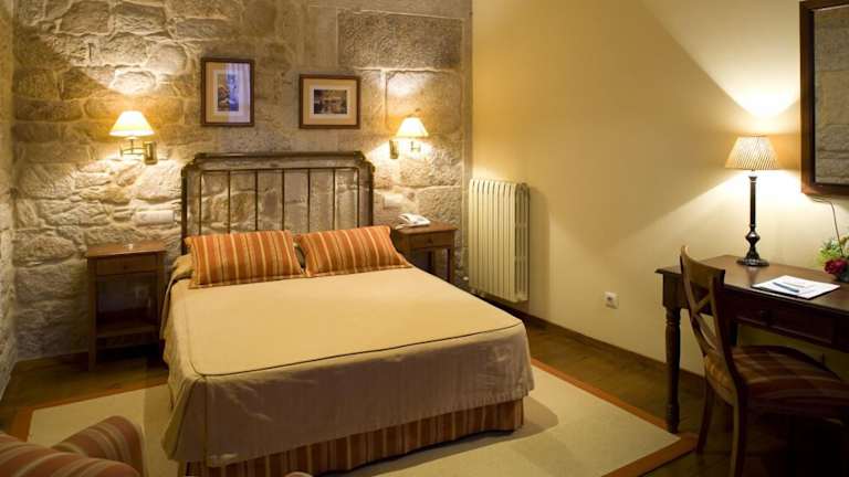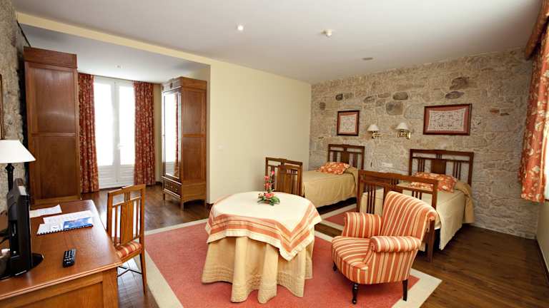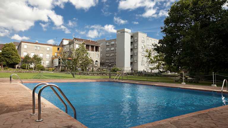 Das Hotel Castro do Balneario in Cuntis ist eine komfortable Unterkunft mit einem freundlichen und hilfsbereiten Personal. Hier können Sie einen erholsamen Aufenthalt inmitten der Natur genießen. Das Hotel bietet eine gute Auswahl an Annehmlichkeiten, darunter Innen- und Außenpools, einen Wellnessbereich mit Whirlpool, Sauna und Massageangeboten sowie ein Restaurant, das täglich ein köstliches Frühstück serviert. Die Zimmer sind gemütlich eingerichtet und verfügen über Annehmlichkeiten wie Klimaanlage, Safe und einen Balkon oder eine Terrasse.