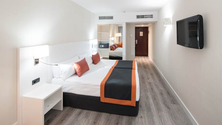Die Zimmer sind mit Klimaanlage und Heizung ausgestattet und verfügen über Teppichboden, Doppelbetten oder Sofabetten. Weiterhin stehen ein Safe, eine Minibar, ein Schreibtisch, ein Kühlschrank, eine Tee-/Kaffeemaschine und WLAN zur Verfügung. Die Badezimmer sind mit einer Dusche, Haartrockner und Kosmetikartikeln ausgestattet. Es sind ebenfalls rollstuhlgerechte Zimmer buchbar. Nichtraucher- und Raucherzimmer sind vorhanden.