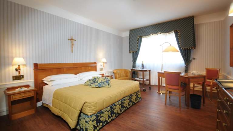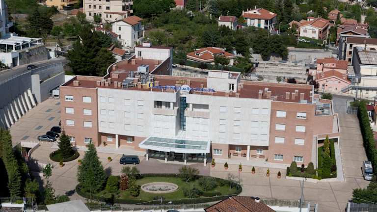 Das Hotel Centro di Spiritualità Padre Pio bietet einen komfortablen Aufenthalt nur wenige Gehminuten von der Wallfahrtskirche San Pio da Pietrelcina entfernt. Neben einem Restaurant und einem spirituellen Zentrum mit Kapellen und Konferenzräumen bietet das Hotel klimatisierte Zimmer mit Sat-TV und kostenfreiem WLAN. Das Krankenhaus Casa Sollievo della Sofferenza ist nur einen kurzen Spaziergang entfernt und das Stadtzentrum erreichen Sie bequem zu Fuß. Genießen Sie den Aufenthalt in einem Zimmer mit Bademantel und Hausschuhen und starten Sie den Tag mit einem leckeren Frühstücksbuffet. Das Hotelrestaurant serviert Ihnen italienische und internationale Gerichte zum Mittag- und Abendessen. Kostenfreie Parkplätze und ein Shuttleservice zu verschiedenen Orten sind verfügbar.