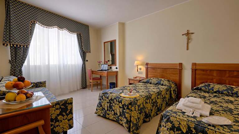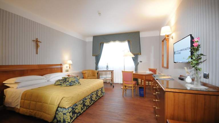 Die klimatisierten Zimmer im Centro di Spiritualità Padre Pio verfügen über Sat-TV und kostenfreies WLAN. Jedes Zimmer ist mit einem eigenen Bad ausgestattet, das einen Haartrockner und Pflegeprodukte enthält. Einige Zimmer bieten zudem einen Balkon. Für zusätzlichen Komfort liegen in allen Zimmern ein flauschiger Bademantel und Hausschuhe bereit.