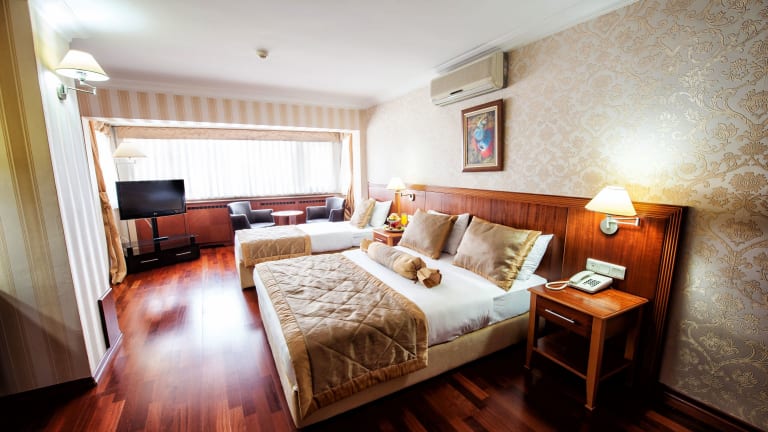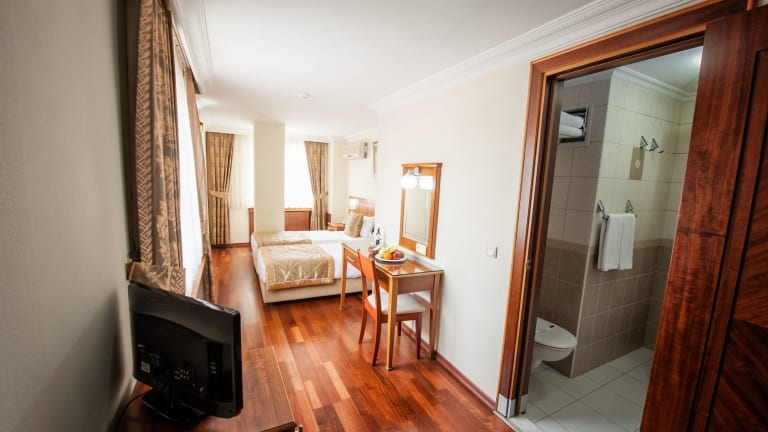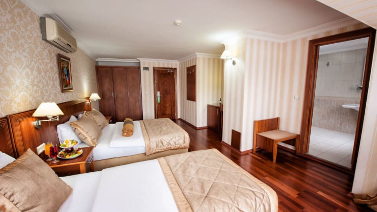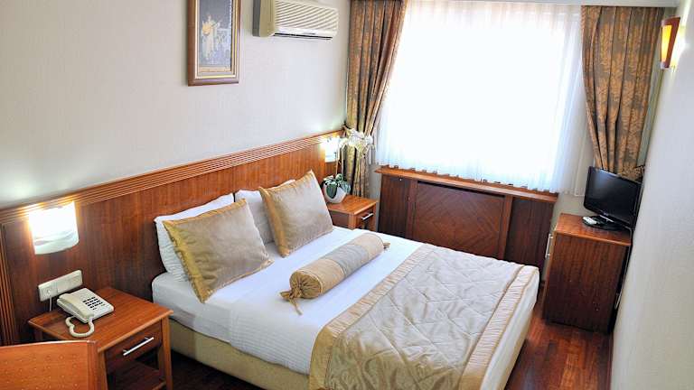 Das Hotel Centrum Istanbul bietet 48 klimatisierte Zimmer mit einer gemütlichen Atmosphäre. Die Zimmer verfügen über eine Minibar, Sat-TV und WLAN. Ein Safe und ein Schreibtisch stehen ebenfalls zur Verfügung. Im Badezimmer gibt es eine Dusche oder Badewanne, einen Haartrockner und kostenlose Kosmetikartikel.