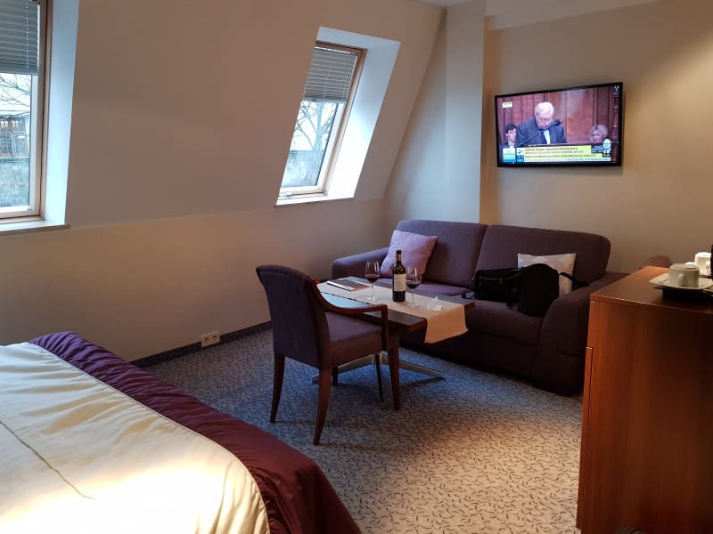 Im Hotel Zamek Centrum gibt es eine Bar, in der Gäste sich entspannen und erfrischende Getränke genießen können. Darüber hinaus besteht die Möglichkeit, das VIP-Zimmer mit Zugang zu einem Weingut zu buchen. Hier können Weinliebhaber exklusive Tropfen verkosten und einen besonderen Abend verbringen.