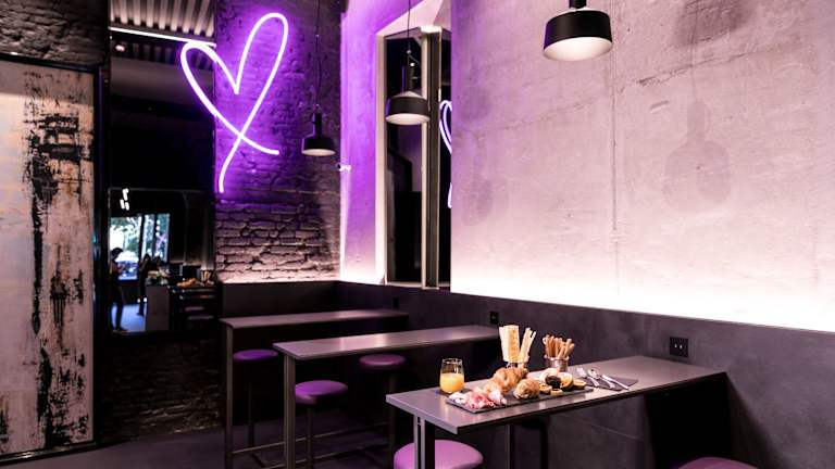 Ein kontinentales Frühstück wird an der Bar des Heart Hotel Milano serviert. Starten Sie Ihren Tag mit einer Auswahl an frischen Speisen und Getränken, um Energie für Ihre Erkundungen in Mailand zu tanken.