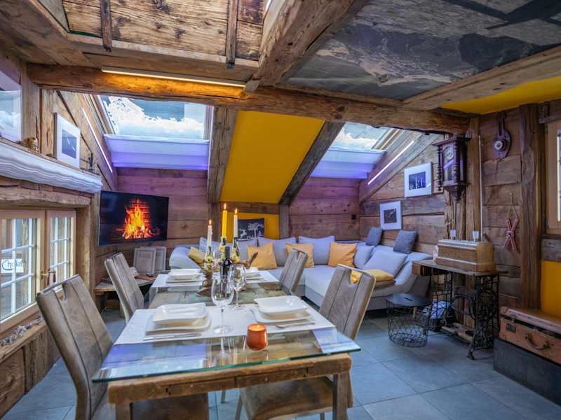 Das Chalet Schtuba in Zermatt bietet geräumige und gemütliche Unterkünfte in einer einzigartigen Umgebung. Die Kombination aus rustikalen Elementen und modernen Möbeln schafft eine warme und einladende Atmosphäre. Genießen Sie den Komfort einer voll ausgestatteten Küche, eines großzügigen Essbereichs und eines Wohnzimmers mit Flachbild-TV und iPod-Dockingstation. Der Whirlpool und die Balkone bieten einen atemberaubenden Blick auf das Matterhorn und die umliegende Berglandschaft. Die zentrale Lage ermöglicht es Ihnen, die Sehenswürdigkeiten von Zermatt bequem zu Fuß zu erreichen.