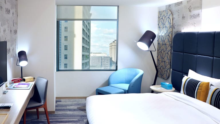 Im Herzen von Banqiao, Taipei, erwartet Sie das moderne und stilvolle Hotel Cham Cham - Taipei. Genießen Sie einen angenehmen Aufenthalt in den klimatisierten Zimmern, die mit Annehmlichkeiten wie Flachbild-Kabel-TV, Wasserkocher, kabellosem Bluetooth-Lautsprecher und mobilem Ladegerät ausgestattet sind. Entspannen Sie im hoteleigenen Garten und nutzen Sie die praktische Lage des Hotels, das nur 10 Gehminuten von verschiedenen Bahnhöfen entfernt liegt. Die 24-Stunden-Rezeption und der Tourenschalter stehen Ihnen zur Verfügung, um Ihren Aufenthalt so angenehm wie möglich zu gestalten.