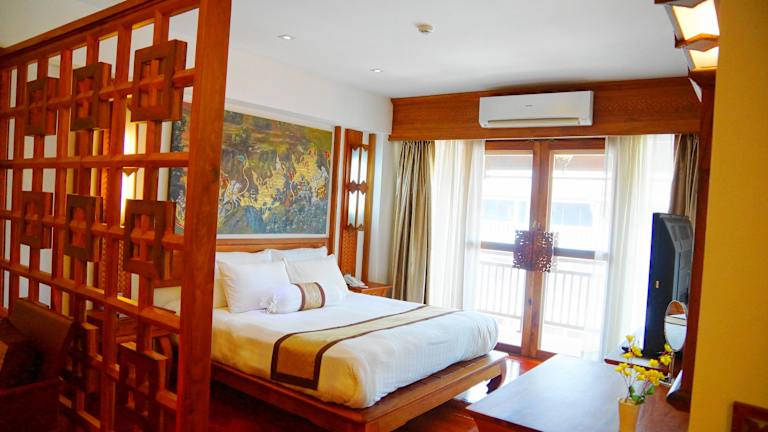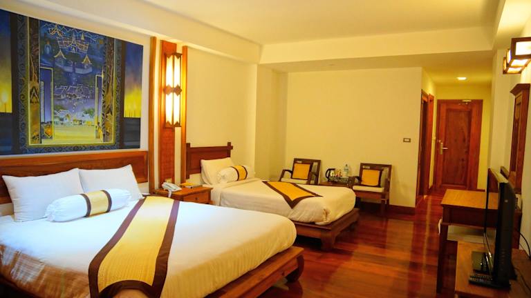 Die Zimmer im Chanthapanya Hotel sind komfortabel und bieten Ihnen einen gemütlichen Rückzugsort nach einem erlebnisreichen Tag. Einige Zimmer verfügen über einen separaten Sitzbereich, in dem Sie sich entspannen können. Zur Ausstattung gehören auch ein Flachbild-Kabel-TV und kostenfreies WLAN.
