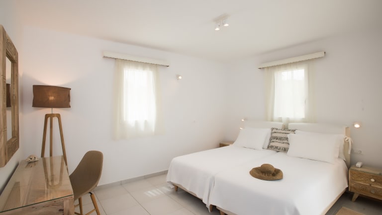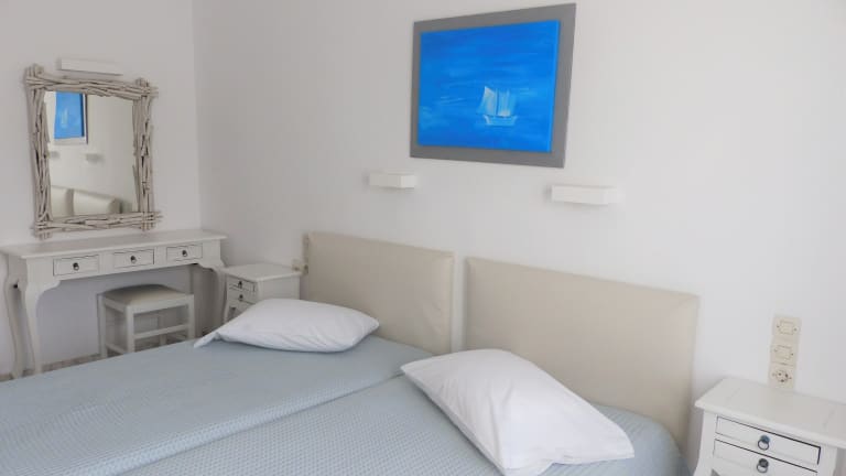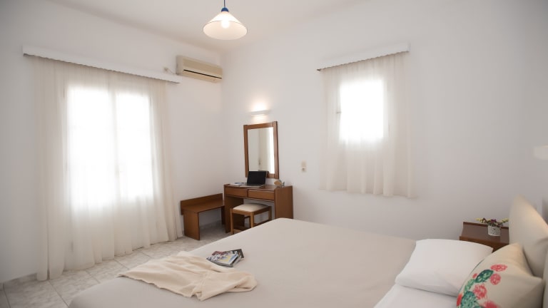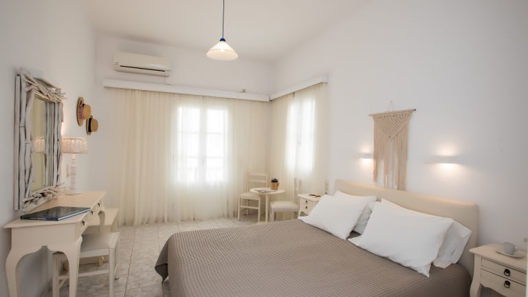 Das Hotel Charissi befindet sich in Mykonos-Stadt, nur etwa 800 m vom Stadtzentrum entfernt. Es liegt im Stadtteil Vryssi und bietet eine ruhige und dennoch zentrale Lage. Die Unterkunft ist ideal für Gäste, die die Privatsphäre einer etwas ruhigeren Gegend genießen möchten, aber dennoch in Gehweite zum Stadtzentrum wohnen möchten. In der Nähe des Hotels befindet sich eine Bushaltestelle, die eine gute Anbindung an das Zentrum von Mykonos-Stadt bietet. Der Sandstrand von Ornos ist nur 2 km entfernt.