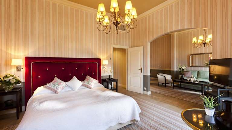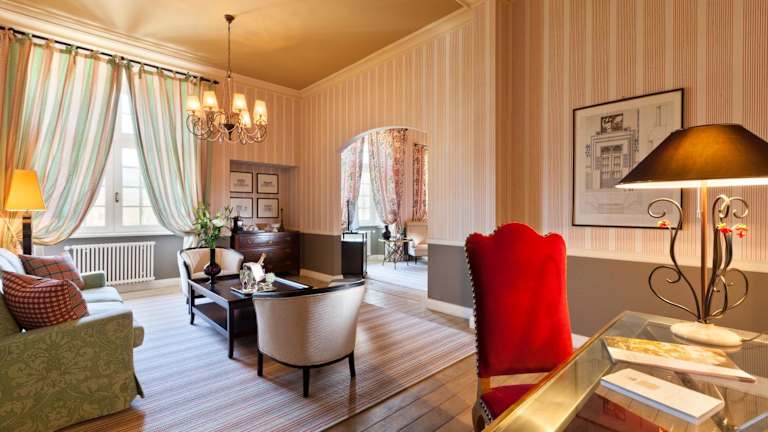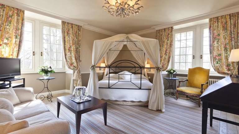 Die Zimmer und Suiten im Château de Germigney sind individuell gestaltet und bieten eine einzigartige und charmante Atmosphäre. Jedes Zimmer ist mit eleganten Möbeln und einem gut ausgestatteten Badezimmer ausgestattet. Der Blick aus den Zimmern auf den Park ist atemberaubend und trägt zum unvergesslichen Aufenthalt bei.