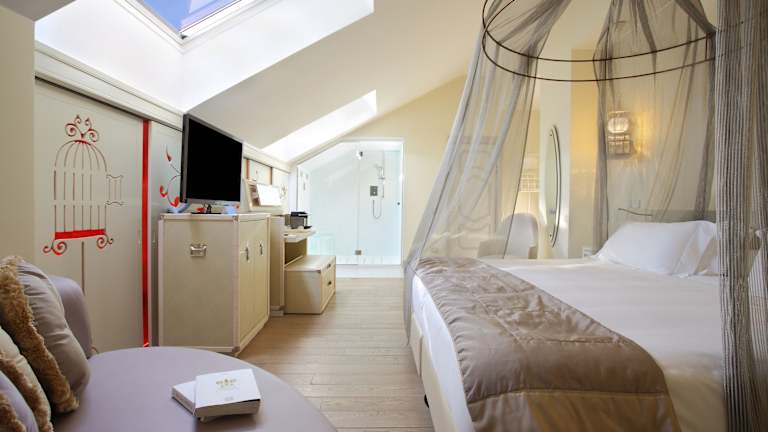 Die Zimmer im Château Monfort - Relais & Châteaux sind nach verschiedenen Märchenthemen und Kinderreimen thematisch gestaltet. Jedes Zimmer bietet elegantes Parkett, einen LCD-TV und kostenloses WLAN. Die Kombination aus antiken Details und modernem Komfort schafft eine einzigartige und glamouröse Atmosphäre.
