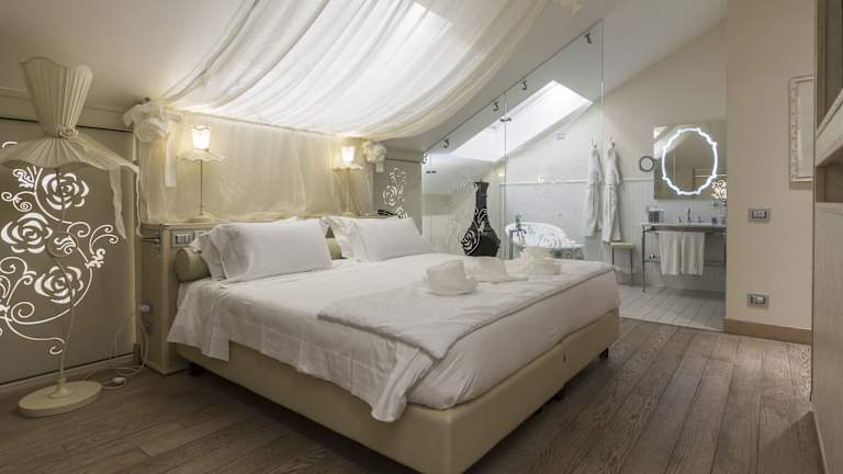 Im Restaurant Rubacuori können die Gäste klassische italienische Küche genießen. Die Loungebar Mezzanotte ist bis spät am Abend geöffnet und bietet eine gemütliche Atmosphäre zum Entspannen. Die Weinbar La Cella Di Bacco beeindruckt mit einer beeindruckenden Auswahl an Weinen. Das Frühstück im Château Monfort umfasst eine Vielzahl von Köstlichkeiten wie Kuchen, frisches Obst, Heiß- und Kaltgetränke, traditionellen Käse und Aufschnitt.