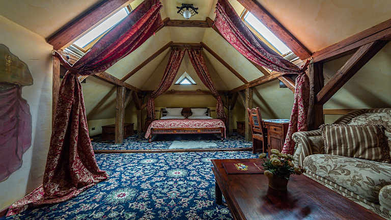 Das Restaurant im Chateau Zbiroh empfängt Sie in einer mittelalterlichen Taverne und bietet Ihnen traditionelle tschechische Küche. Hier können Sie regionale Spezialitäten probieren und sich von den kulinarischen Köstlichkeiten verwöhnen lassen.