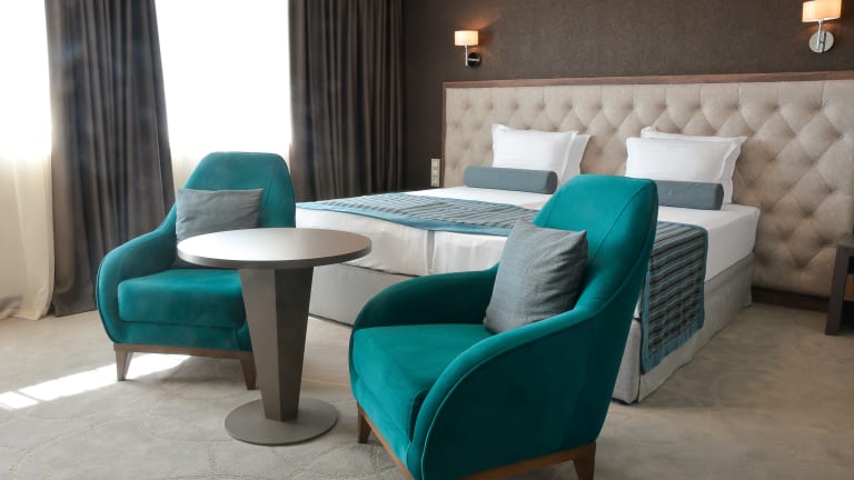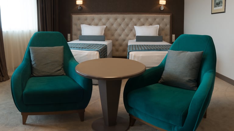 199 Zimmer. Alle gerade renoviert. Darunter auch Deluxe Zimmer mit sinnvollem Arbeitsbereich und Business Apartments. Long Stay ist kein Problem. Bewachte Garage. Horizontal betrachtet hoechstes Fruehstueck in Varna. Waescheservice, Fitness, Room Service. Verschiedene Restaurants und Bars. Smart TV und WiFi ueberall.