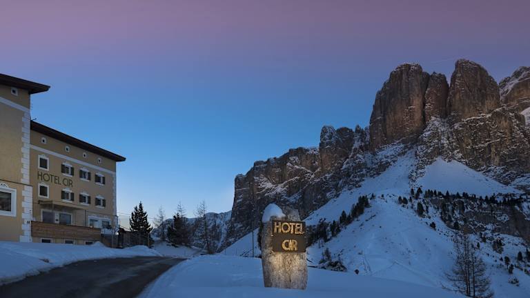 Das Hotel Cir befindet sich in einer malerischen Lage am Grödner Joch, zwischen Wolkenstein in Gröden und Corvara. Es ist ein idealer Ausgangspunkt für Skifahrer und bietet eine schnelle Anbindung an die Sellaronda-Skipisten. Im Sommer können Sie von hier aus zahlreiche Aktivitäten wie Wandern, Klettern und Radfahren genießen.