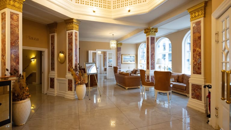 Das Hotel Plaza wurde im Jahr 1919 erbaut und verfügt über 66 Zimmer, die sich auf 5 Etagen verteilen. Jedes Zimmer ist mit einem Flachbild-TV, kostenfreiem WLAN und kostenfreien Tageszeitungen ausgestattet. Die Gäste können sich auch über kostenfreies Obst und Kekse am Nachmittag freuen. An der 24-Stunden-Rezeption können Snacks und andere Produkte erworben werden.
