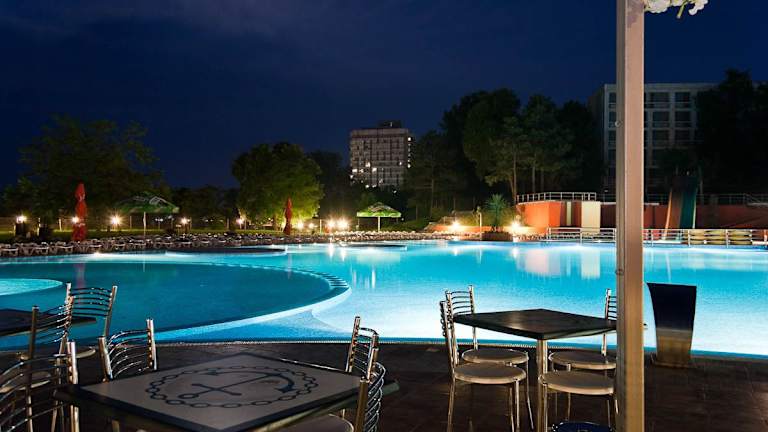 Das Hotel verfügt über Innen- und Außenpools, einschließlich eines separaten Kinderpools. Gäste können sich im Whirlpool entspannen, die Wasserrutsche genießen oder an der Poolbar erfrischende Getränke genießen. Fitnessräume stehen für Workouts zur Verfügung und im Spa-Bereich können verschiedene Wellnessanwendungen wie Massagen und Saunabesuche gebucht werden.
