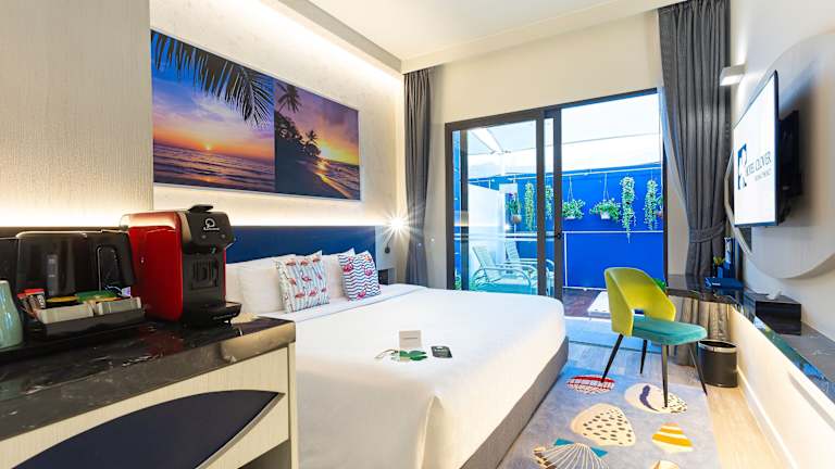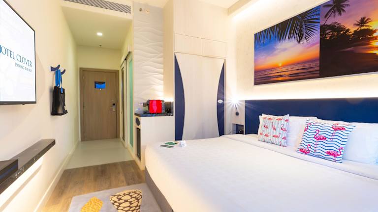 Die Zimmer im Hotel Clover Patong Phuket sind mit modernen Annehmlichkeiten wie Klimaanlage, Minibar und WLAN ausgestattet. Die meisten Zimmer verfügen über einen Balkon, von dem aus Sie den Blick auf die Umgebung genießen können. Die Badezimmer sind geräumig und bieten eine Dusche, eine Badewanne und eine Whirlwanne.