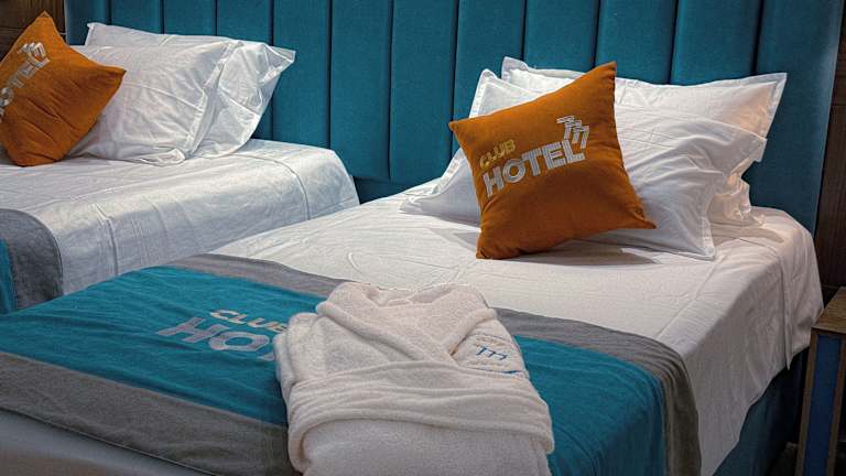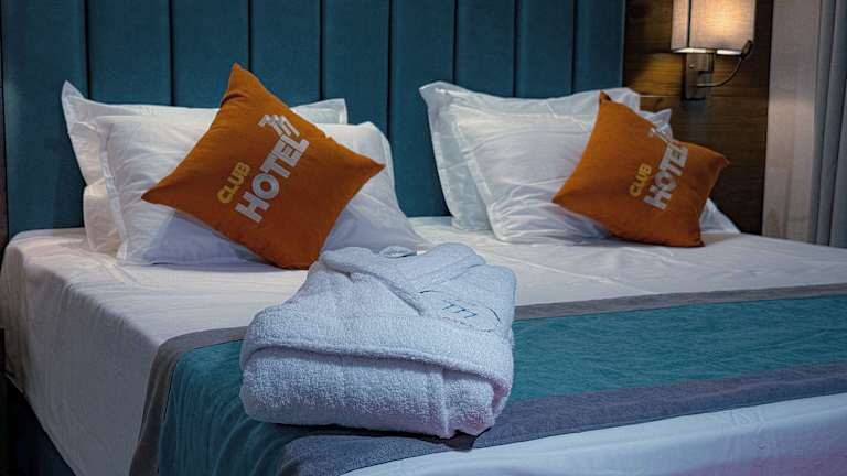 Die Zimmer im Hotel Club 777 sind komfortabel eingerichtet und verfügen über eine individuell regelbare Klimaanlage, eine Minibar und kostenfreies WLAN. Jedes Zimmer ist mit einem Fernseher und einem eigenen Badezimmer mit Badewanne oder Dusche ausgestattet. Ein Haartrockner steht ebenfalls zur Verfügung.