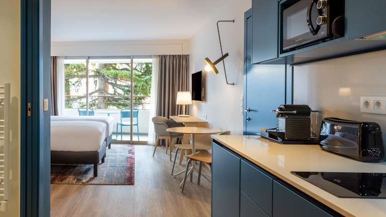 Die Zimmer und Suiten im Staybridge Suites - Cannes Centre, ein IHG Hotel, sind modern eingerichtet und verfügen über eine Klimaanlage sowie Annehmlichkeiten wie einen Flachbild-TV, einen Kühlschrank, einen Schreibtisch und kostenloses WLAN. Ein privater Balkon mit Blick auf die Hügel oder nach Süden ist ebenfalls vorhanden.