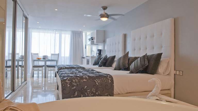 Die Zimmer im Hotel Club Puerto Atlantico sind modern und stilvoll eingerichtet und verfügen über alle Annehmlichkeiten, die man von einem erstklassigen Hotel erwarten kann. Jedes Zimmer verfügt über einen eigenen Balkon oder eine Terrasse, auf der Sie die Sonne genießen können. Die Zimmer sind mit Klimaanlage, Sat-TV und kostenfreiem WLAN ausgestattet.
