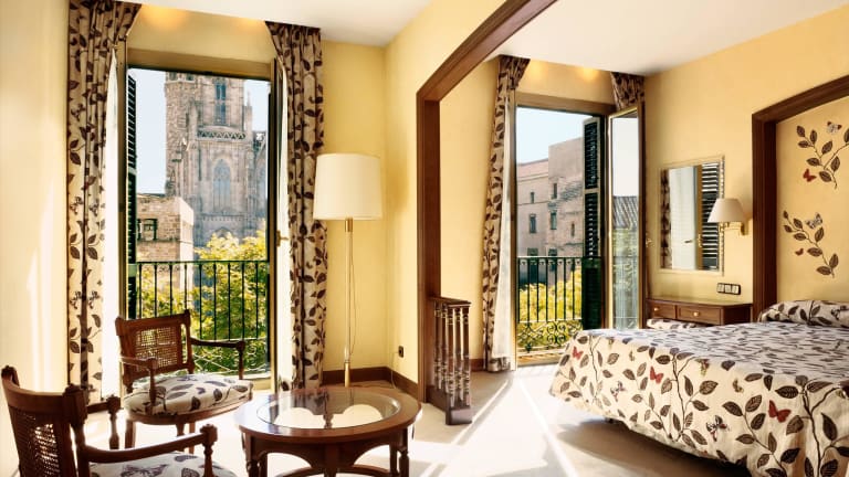 It is situated in a privileged location right opposite the Barcelona Gothic Cathedral, 5-minute walk from Plaza Catalunya.