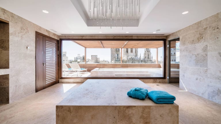 The hotel has a panoramic wellness area that will allow you to enjoy an exclusive vitality pool with spectacular views of the Cathedral and a Spa and Health area including massage cabins, body and facial treatments.